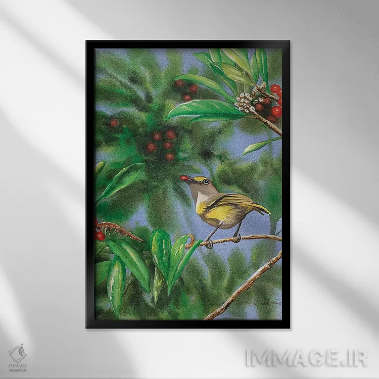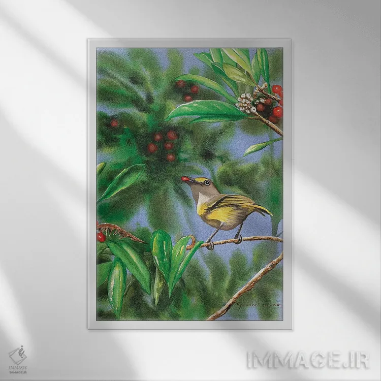 این اثر با عنوان «ویرو چشمسفید (پرنده)» اثرِ «کریستین ریشو» به دیوار، انرژیِ نرم و زنده میدهد؛ برای نشیمنهای خانوادگی انتخابی خوشسلیقه است. هم فضا را گرم میکند، هم شلوغش نمیکند.