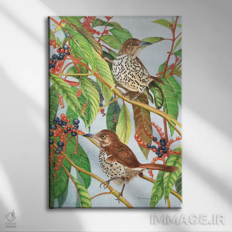 تابلو دکوراتیو سینه سرخ قهوه ای اثر کریستین ریشو