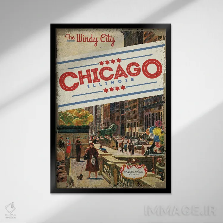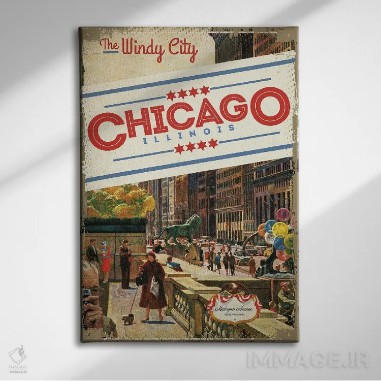 «به شهر بادها خوش آمدید (شیکاگو)» اثرِ «سَتردِی ایونینگ پُست (مجله و برند هنری آمریکایی)» یک قاب شهری و مدرن است؛ موضوعِ این اثر با اجرای هنری، کنار مبلمان ساده خیلی خوب مینشیند.