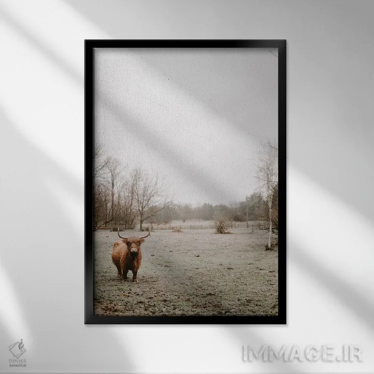 تابلو دکوراتیو گاو هایلند مه آلود اثر چلسیا ویکتوریا
