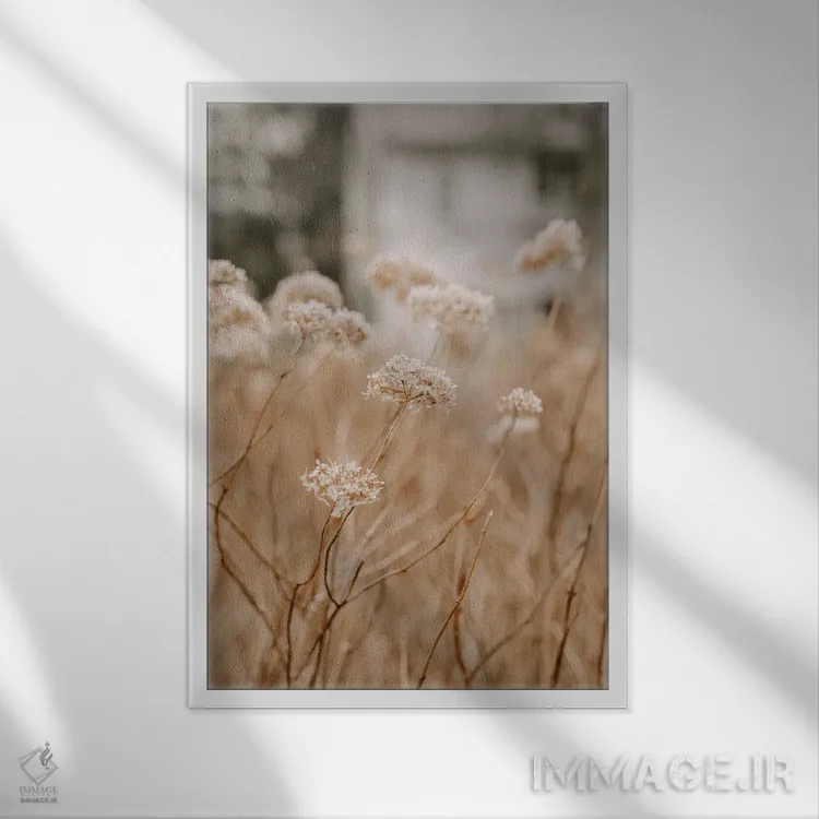 براساس پالت گرم اثر، قاب بلوط روشن (چوبی) پیشنهاد اول است و استخوانی ملایم مکمل. برای سفارشهای پروژهای با ابعاد و قابهای اختصاصی با ایماژ در تماس باشید.