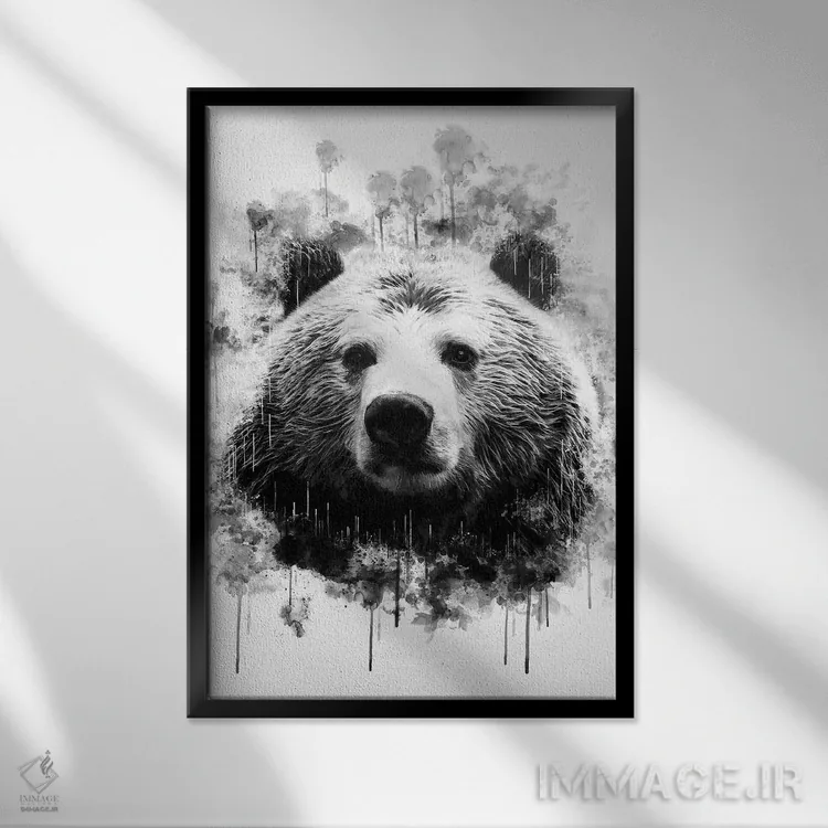 تابلو دکوراتیو سر خرس سیاه و سفید اثر کورنل ولاد