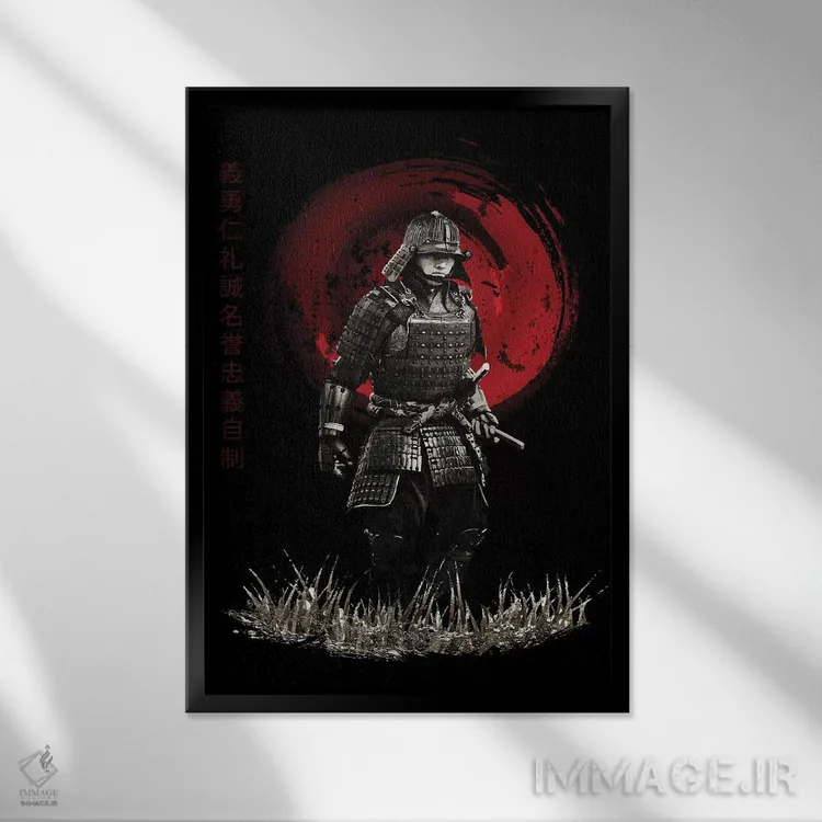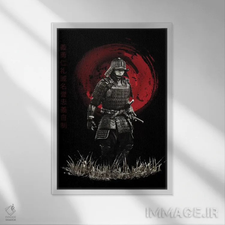 «سامورایی بوشیدو در حال رژه» اثرِ «کورنل ولاد» با حالوهوای آسیایی، کنار نور ملایم و متریالهای طبیعی (چوب/سنگ) بسیار خوشفرم دیده میشود.