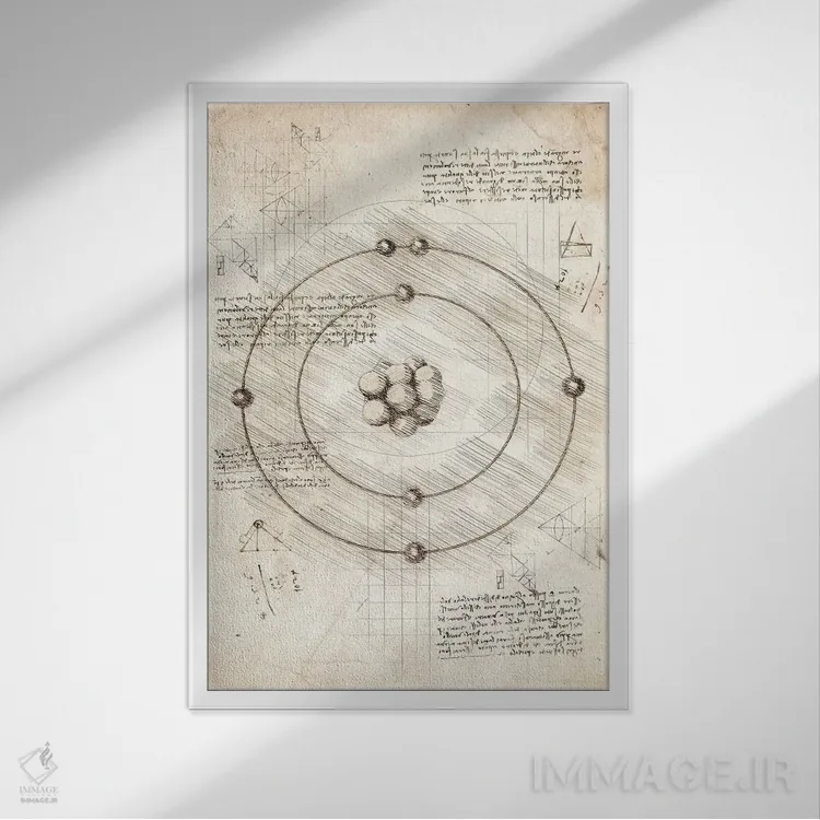 تابلو دکوراتیو ذرات زیراتمی اثر کورنل ولاد - نمای قاب‌دار سفید