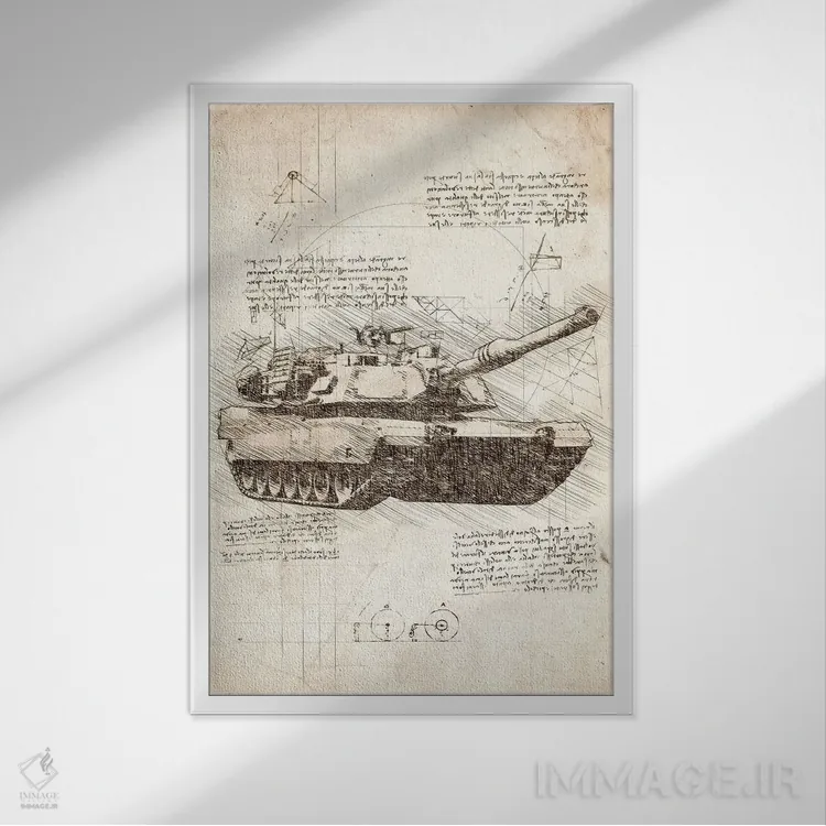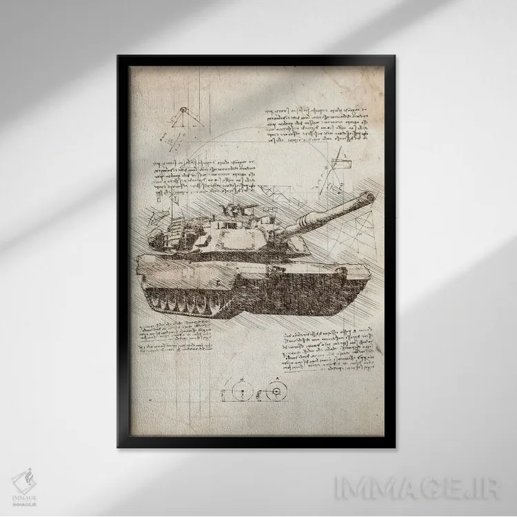 تابلو دکوراتیو تانک اثر کورنل ولاد - نمای قاب‌دار مشکی