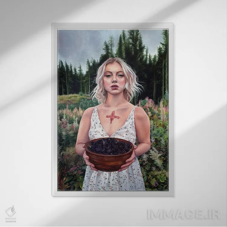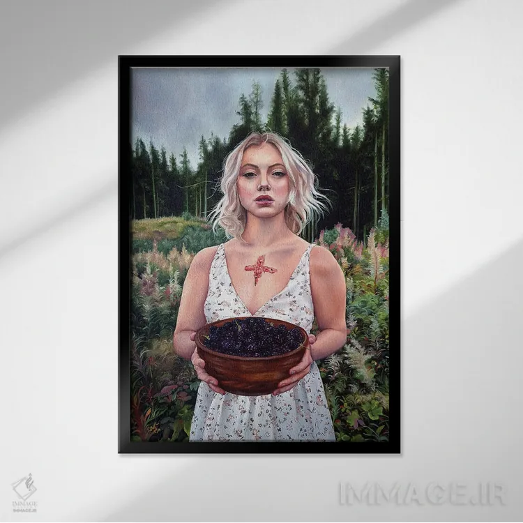براساس پالت ترکیبی اثر، قاب تیک گرم (چوبی) پیشنهاد اول است و مشکی مات (فریم متوسط) مکمل. برای سفارشهای پروژهای با ابعاد و قابهای اختصاصی با ایماژ در تماس باشید.