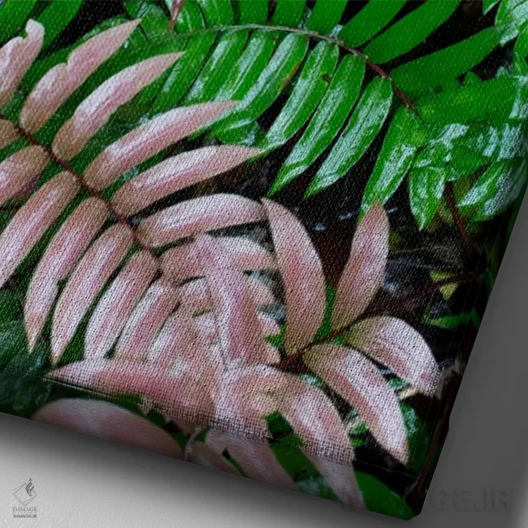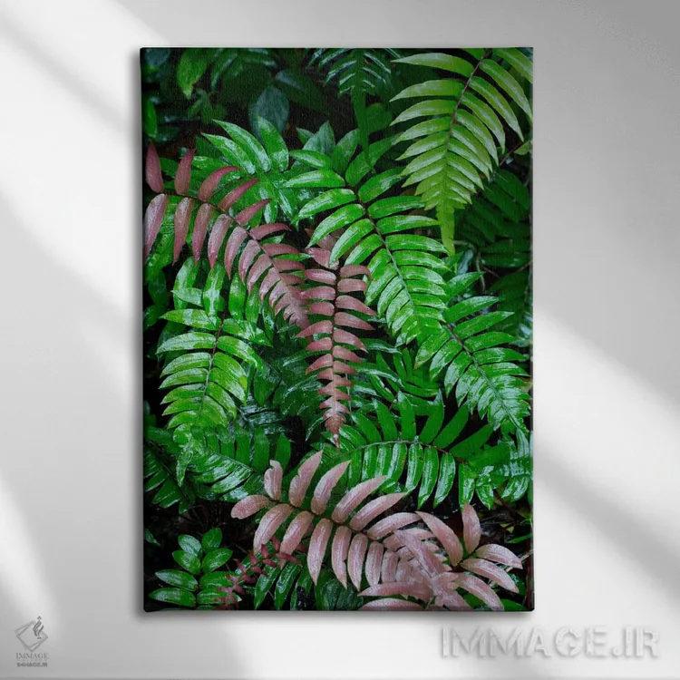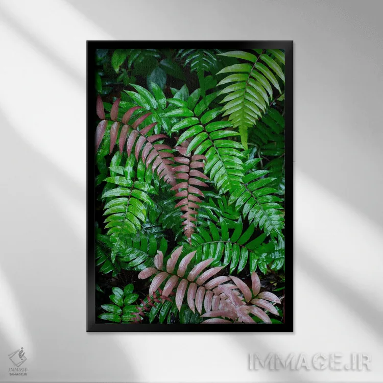 «Barro Colorado Island، Panama، برگهای سرخس مرطوب در جنگل بارانی گرمسیری، جزیره بارو کلرادو، پاناما» اثرِ «سیریل روسو» یک تصویر تمیز و دقیق از این اثر است؛ مناسب دکورهای مدرن و مینیمال.