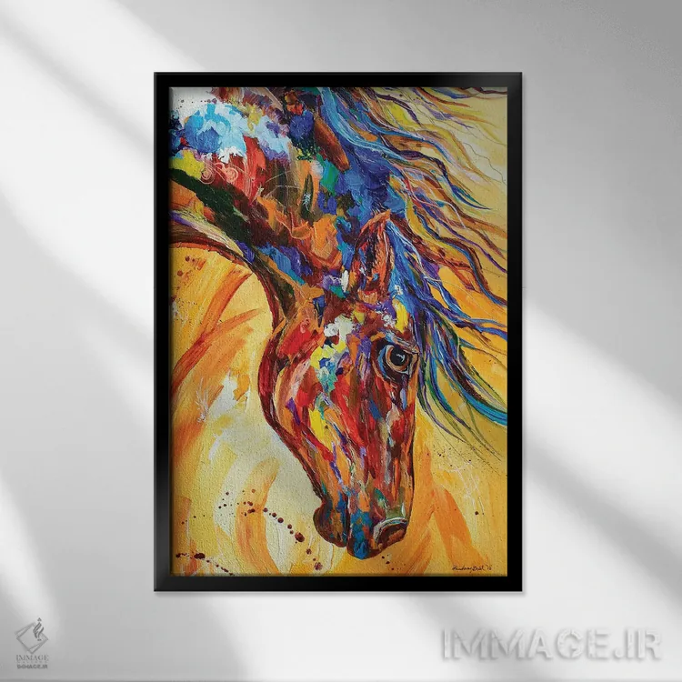 براساس پالت ترکیبی اثر، قاب تیک گرم (چوبی) پیشنهاد اول است و مشکی مات (فریم متوسط) مکمل. برای سفارشهای پروژهای با ابعاد و قابهای اختصاصی با ایماژ در تماس باشید.
