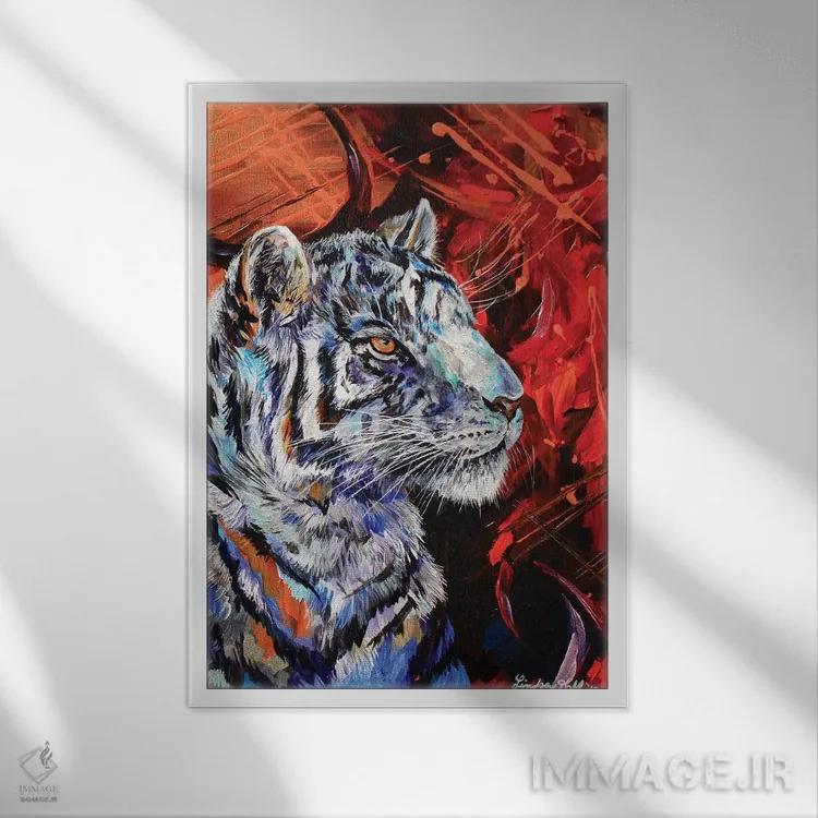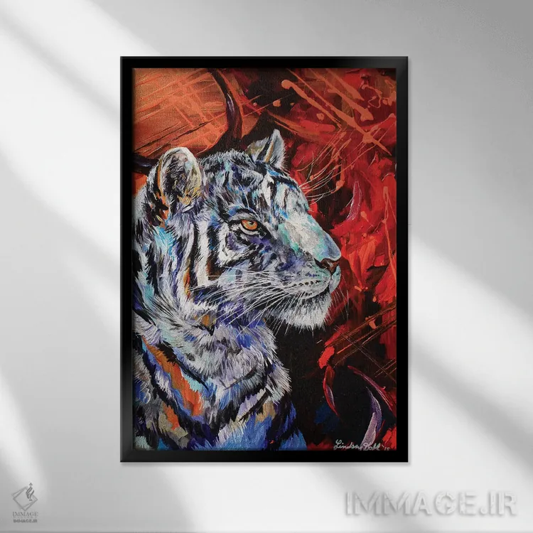 براساس پالت ترکیبی اثر، قاب تیک گرم (چوبی) پیشنهاد اول است و مشکی مات (فریم متوسط) مکمل. برای سفارشهای پروژهای با ابعاد و قابهای اختصاصی با ایماژ در تماس باشید.