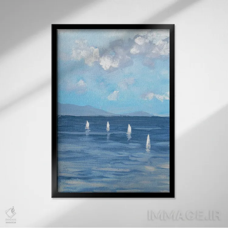 براساس پالت سرد اثر، قاب سفید مات (فریم باریک) پیشنهاد اول است و نقرهای برسخورده (متالیک) مکمل. برای سفارشهای پروژهای با ابعاد و قابهای اختصاصی با ایماژ در تماس باشید.