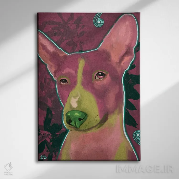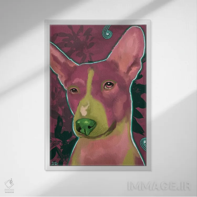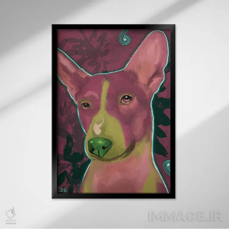 «باسنجی (نژاد سگ)» اثرِ «دائو زد» از آن کارهاییست که به دیوار، انرژیِ نرم و زنده میدهد؛ برای دیوار کنار میز کار انتخاب خوبیست. هم فضا را گرم میکند، هم شلوغش نمیکند.