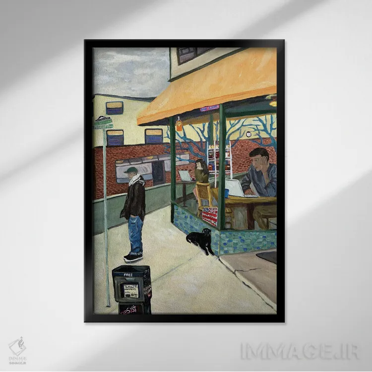 براساس پالت ترکیبی اثر، قاب بلوط روشن (چوبی) پیشنهاد اول است و استخوانی ملایم مکمل. برای سفارشهای پروژهای با ابعاد و قابهای اختصاصی با ایماژ در تماس باشید.