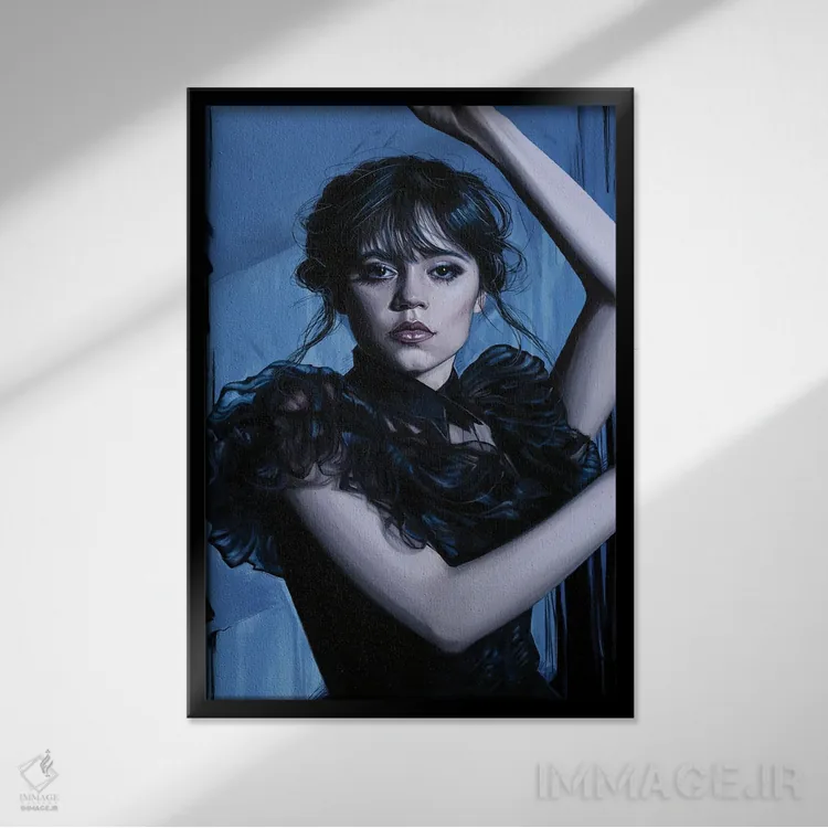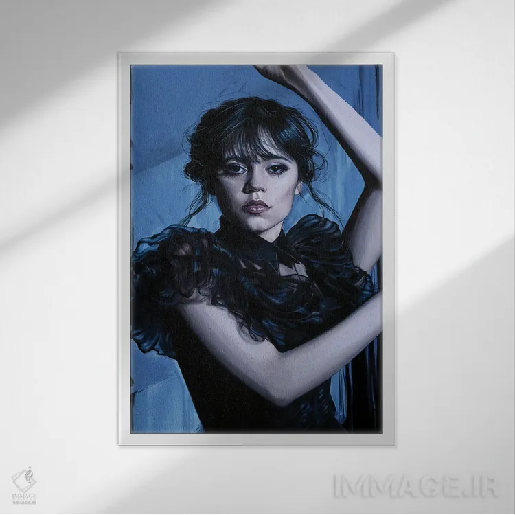 براساس پالت سرد اثر، قاب سفید مات (فریم باریک) پیشنهاد اول است و نقرهای برسخورده (متالیک) مکمل.