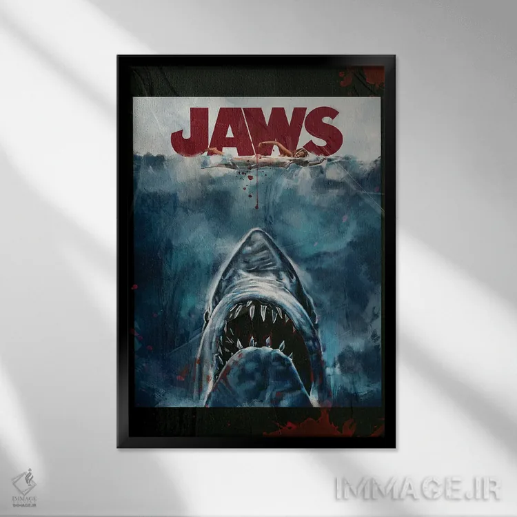 «پوستر فیلم آروارهها» اثرِ «دمیتری بلف» با موضوعِ این اثر، برای استودیوها، اتاق کار و چیدمانهای مدرن خیلی خوب جواب میدهد.