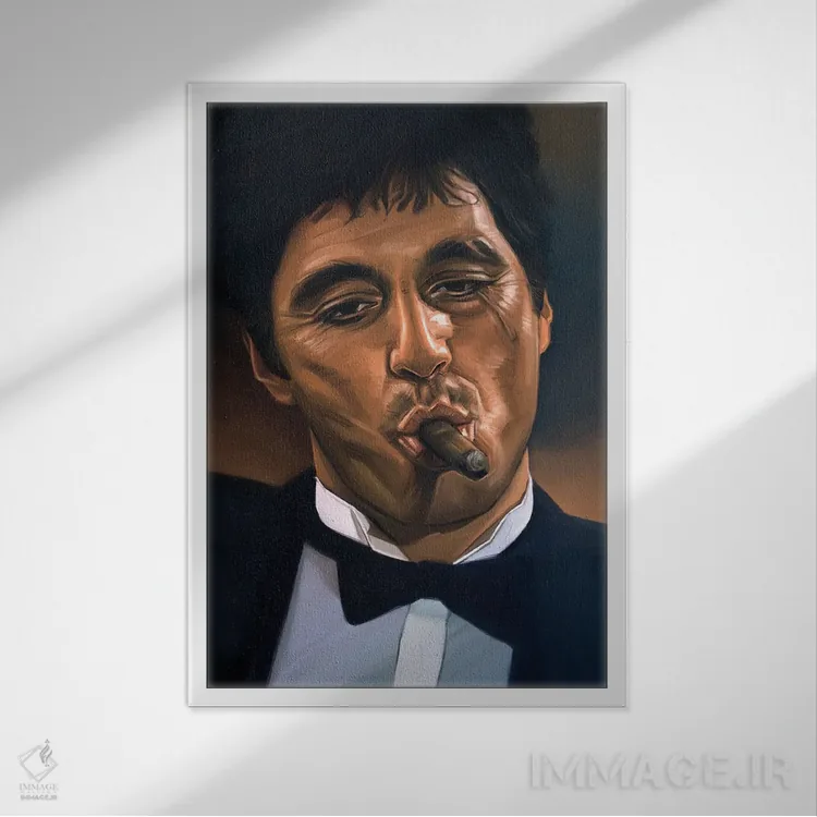 در این اثر، «صورت زخمی، تونی مونتانا» اثرِ «دمیتری بلف» به فضا، روایت ملایم و قابل لمس میدهد؛ برای کنار کتابخانه یا میز کار پیشنهاد میشود. در کنار گیاهان آپارتمانی هم جلوهٔ لطیفی پیدا میکند.
