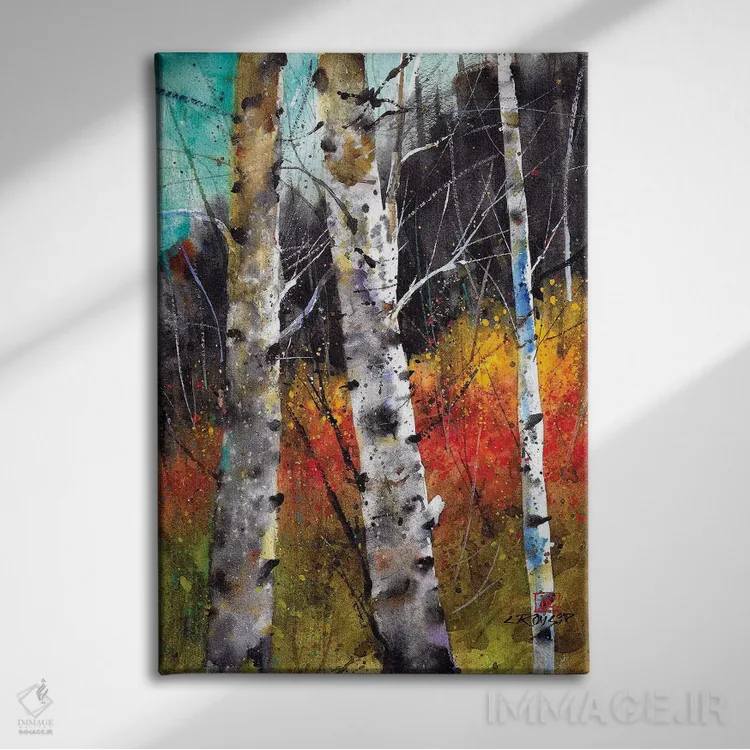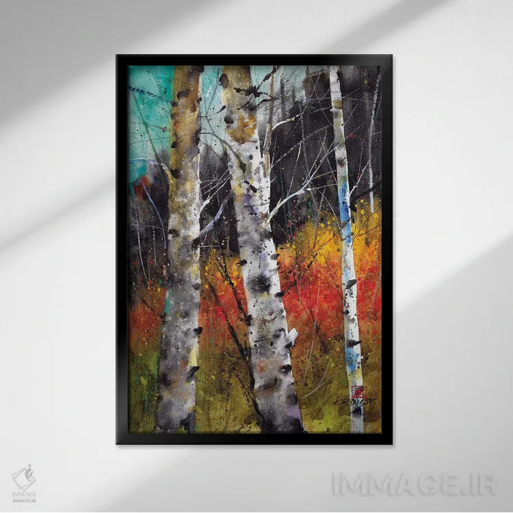 برای دیواری که میخواهید نرمتر دیده شود، «درختان در آتش» اثرِ «باور کراوزر» مثل یک قطعهٔ دکورِ همیشهبهروز عمل میکند؛ برای راهروهای مینیمال انتخابی خوشسلیقه است. حضورش آرام است، اما بیاثر نیست.