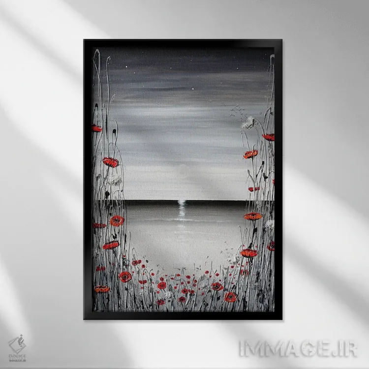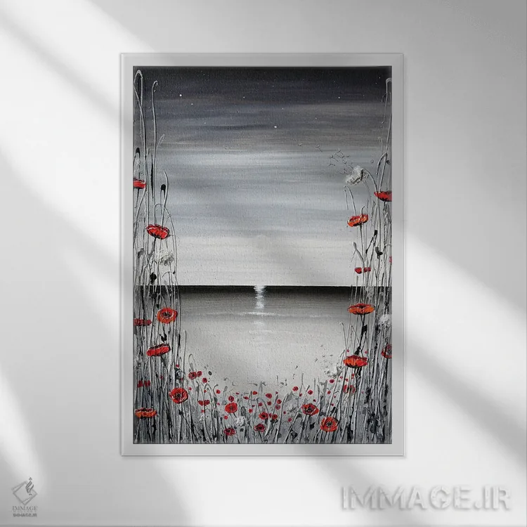 اگر دوست دارید دیوار روشنتر و آرامتر دیده شود، «شب مهتابی» اثرِ «آماندا داگ» تعادل رنگیِ لطیفی به چیدمان میدهد، برای کنار میز آرایش یا کنسول گزینهٔ مناسبیست. جزئیاتش از نزدیک هم ارزش تماشا دارد.