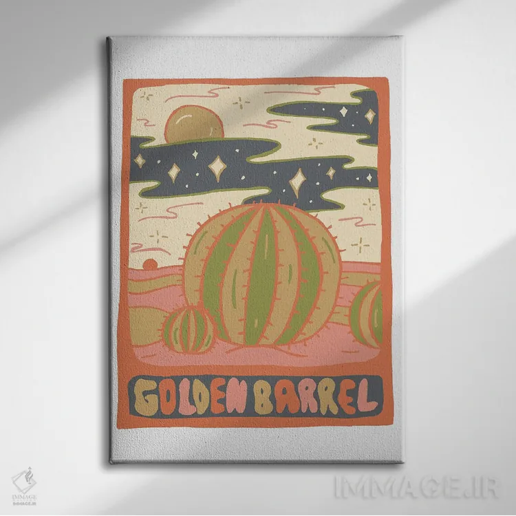 تابلو مدرن کارت تاروت کاکتوس، گونه بشکه طلایی اثر دودل بای مگ