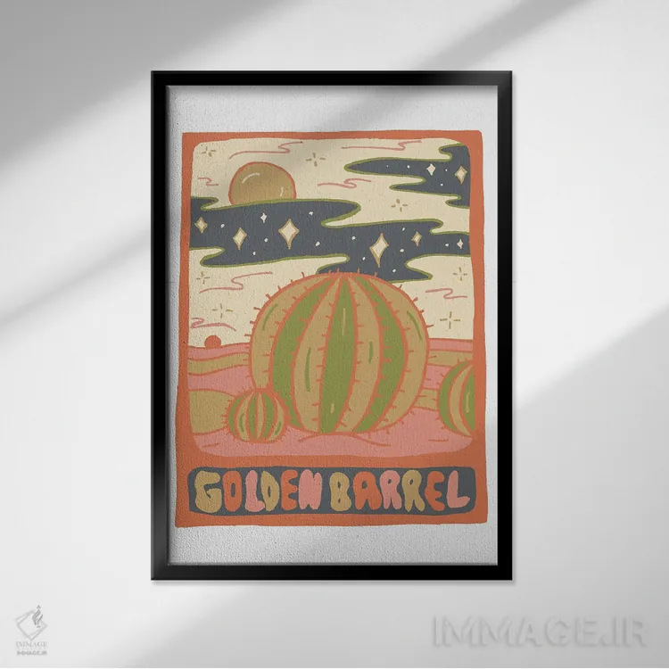 «کارت تاروت کاکتوس، گونهٔ بشکه طلایی» اثرِ «دودل بای مگ (استودیوی هنری)» از جنسِ دکورهای گرم و صمیمیست؛ برای نشیمن، اتاق خواب یا حتی فضای کار با چیدمان روشن.