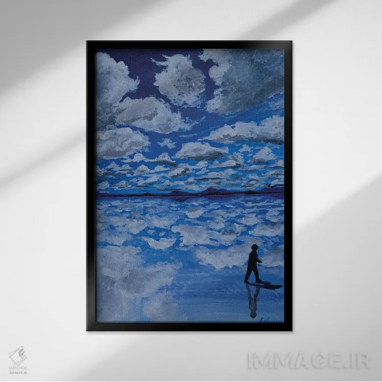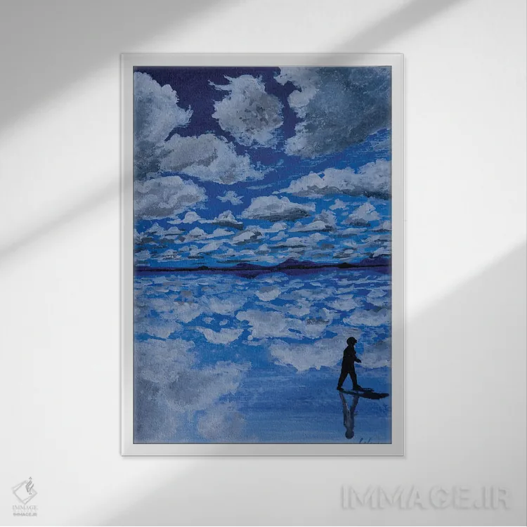 براساس پالت سرد اثر، قاب سفید مات (فریم باریک) پیشنهاد اول است و نقرهای برسخورده (متالیک) مکمل. برای سفارشهای پروژهای با ابعاد و قابهای اختصاصی با ایماژ در تماس باشید.