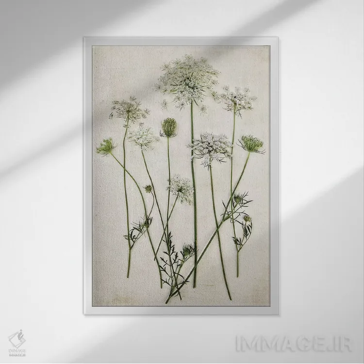 برای اتاق خواب و نشیمنهای آرام، «گیاه ملکه آن (گیاهی شبیه هویج وحشی)» اثرِ «دبرا اوبرتانک» حس فصل را آرام وارد فضا میکند؛ برای نشیمنهای روشن انتخابی خوشسلیقه است. همیشه بهروز میماند و با فصلها خوب کنار میآید.