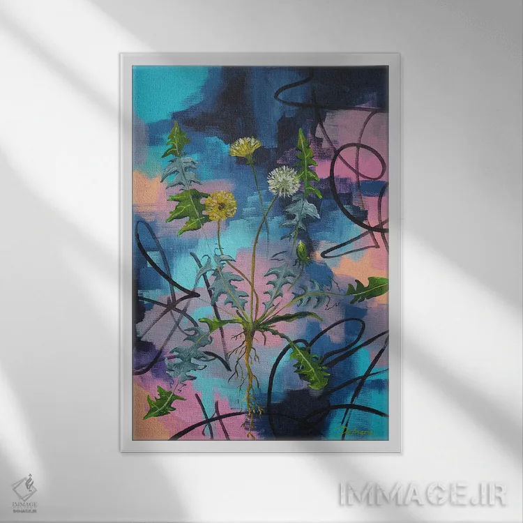 در «قاصدک بر زمینه احساسی» اثرِ «دلنارا ال»، گلها و گیاهان مثل یک قطعهٔ دکورِ همیشهبهروز عمل میکند؛ برای فضای غذاخوری انتخابی خوشسلیقه است. اگر دنبال «زیباییِ بیصدا» هستید، این اثر همان حس را دارد.