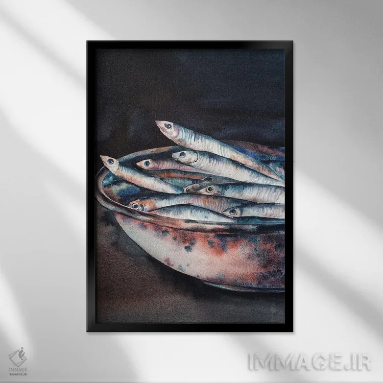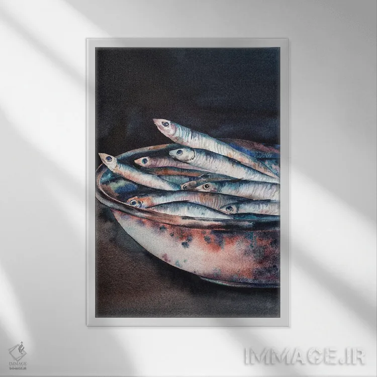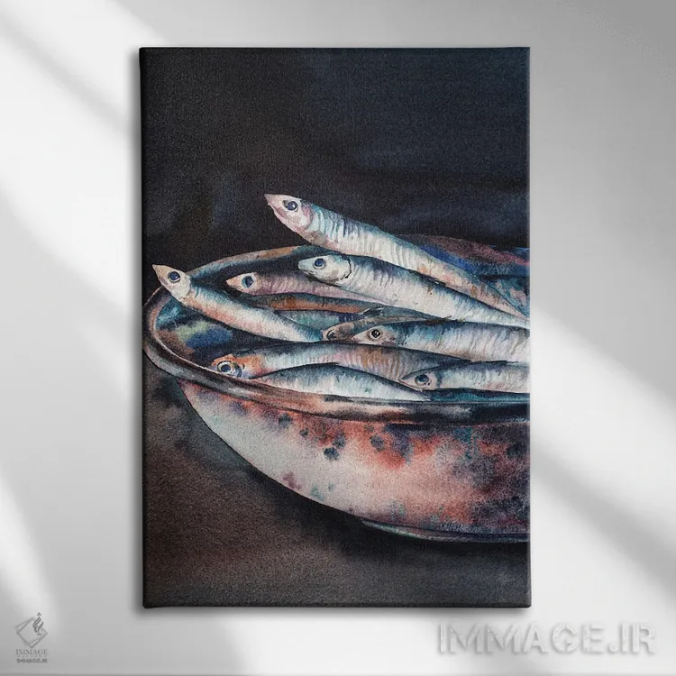 اگر میخواهید دیوار کمی سرزندگیِ محترمانه داشته باشد، «ماهی در تُنگ» اثرِ «دلنارا ال» یک لبخند ریز به چیدمان میدهد، برای خانههایی با چوب و پارچههای گرم گزینهٔ مناسبیست. حسش صمیمی است، اما کیفیتش جدی و خوشپرداخت.