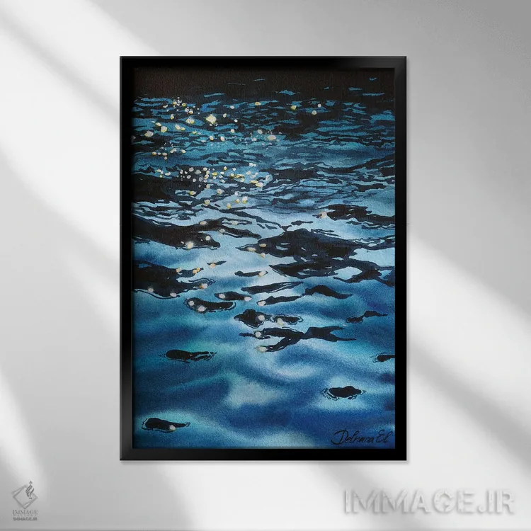 تابلو دکوراتیو انعکاس دریا و موج ها اثر دلنارا ال - نمای قاب‌دار مشکی