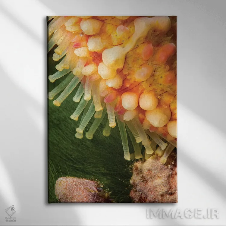 «Echinaster Callosus، Yap، Micronesia، نمای نزدیک از پاهای لولهای یک ستاره دریایی زگیلی (Echinaster callosus)، یاپ، میکرونزی» اثرِ «دیوید فلیتهام» میتواند اتاق را جمعوجورتر و مرتبتر نشان بدهد؛ برای محیطهای کاری و استودیوهای خلاق پیشنهاد میشود. برای هدیه دادن هم انتخابی محترمانه و امن است.