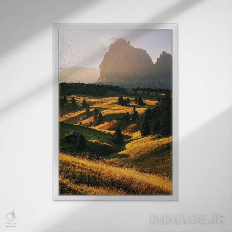 وقتی چیدمان را با دقت میچینید، «صبح تابستانی طلایی در آلپه دی سوییسی (دولومیت)» اثرِ «دنیل گاستاگر» جلوهٔ رنگها را طبیعیتر و متعادلتر نشان میدهد؛ برای دیوار بالای کنسول یا شومینه پیشنهاد میشود. برای پروژههای طراحی داخلی هم گزینهای قابل اتکاست.