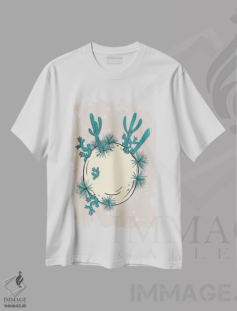 تیشرت طرح دار ماه کاکتوس، تزئینی اثر اروویند پرینتس | فروشگاه ایماژ