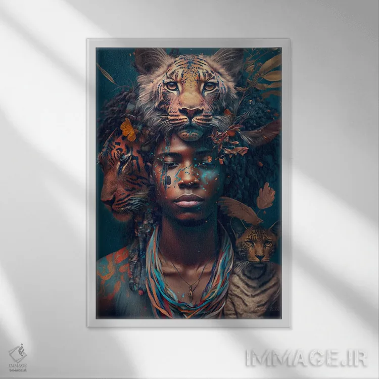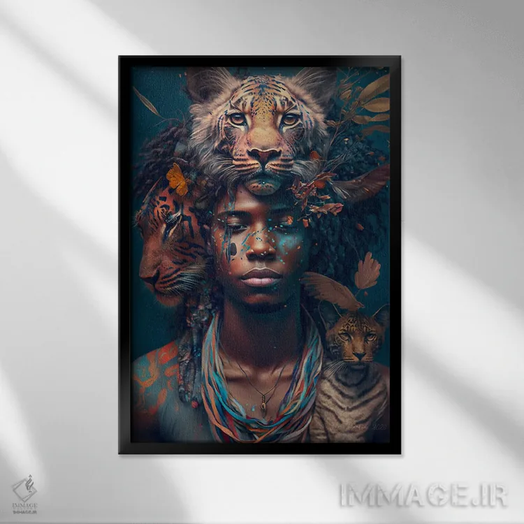 تابلو دکوراتیو پسر جوان و حیوان روحی گربه سان ۲ اثر دیجیتال وایلد آرت