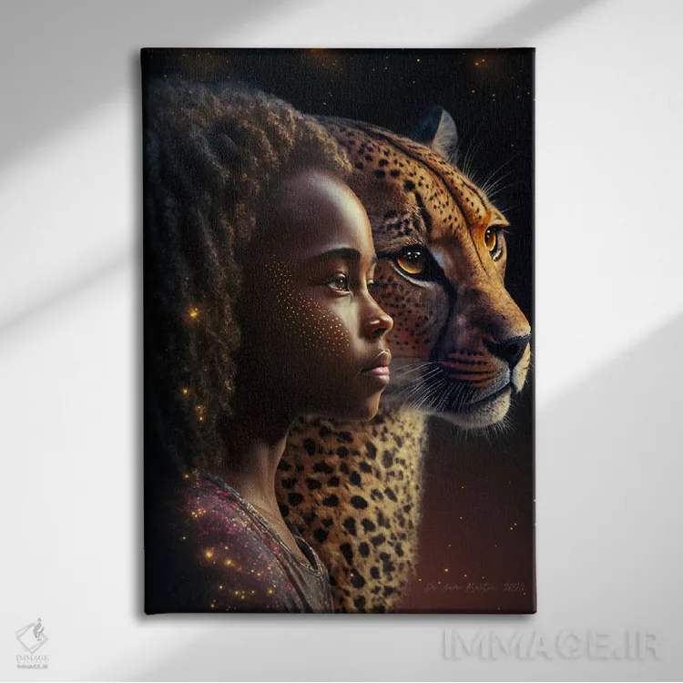 برای اتاقی که به یک عنصر دوستداشتنی نیاز دارد، «دختر آفریقایی آیندهگرا (آفروفیوچریسم)» اثرِ «دیجیتال وایلد آرت (استودیو هنری)» بدون کودکانه شدن، بازیگوش و خوشپرداخت میماند؛ برای نشیمنهای خانوادگی انتخابی خوشسلیقه است. حسش صمیمی است، اما کیفیتش جدی و خوشپرداخت.