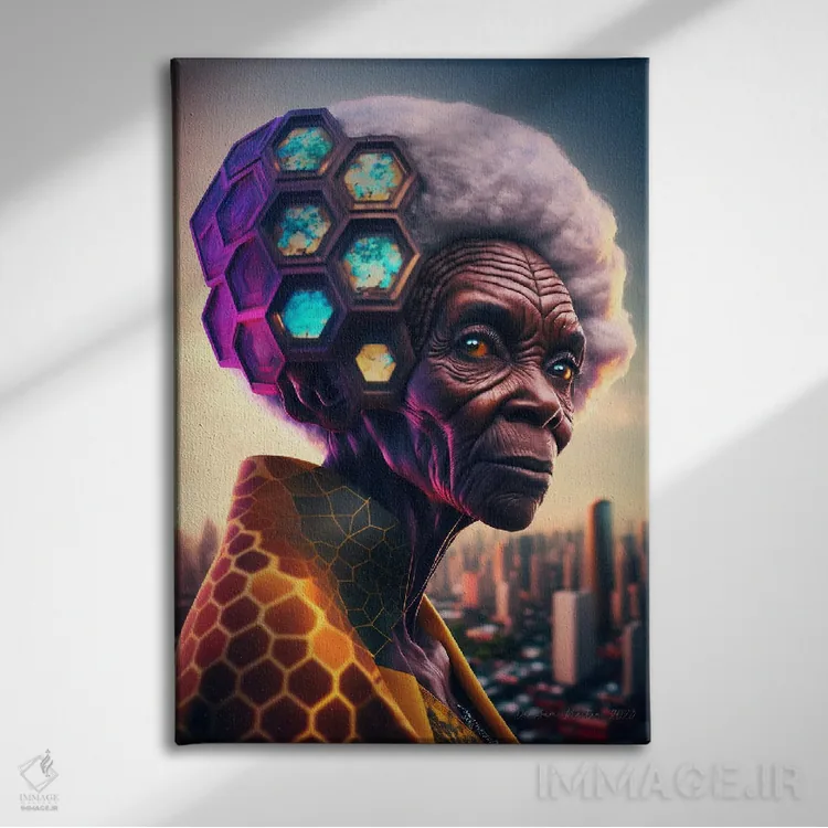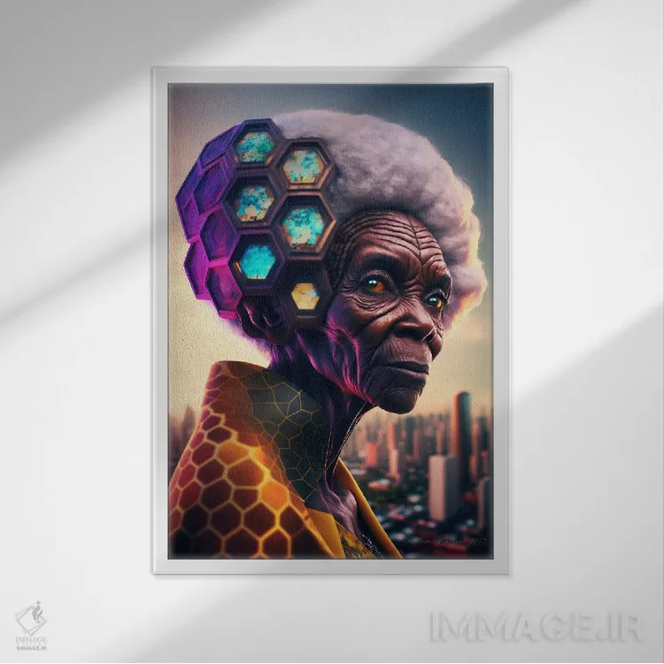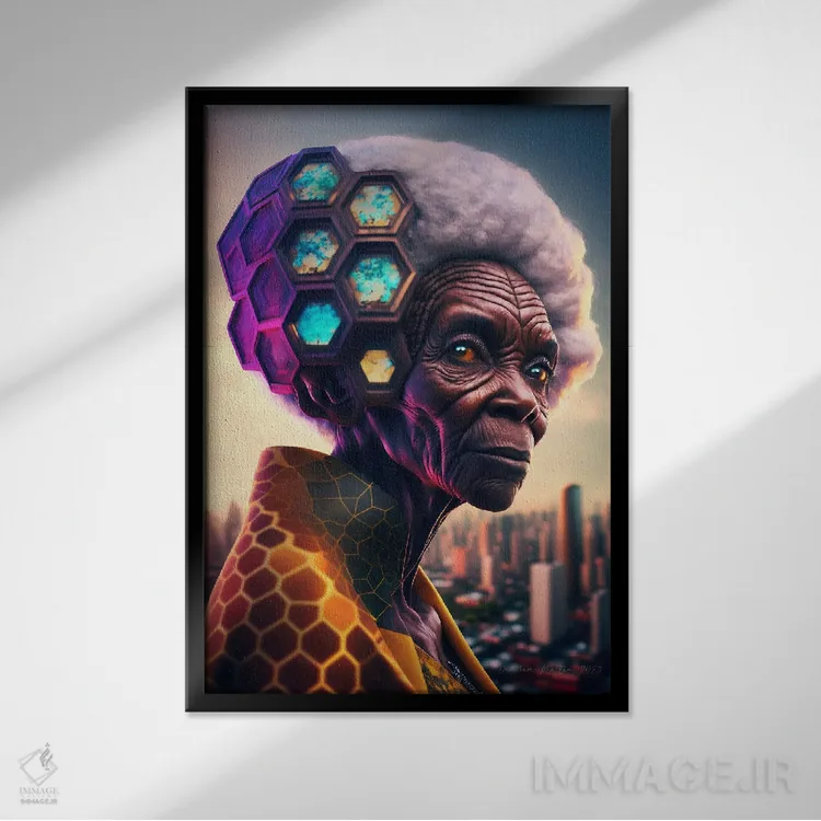 برای دکورهای صمیمی، «مادربزرگ سیاه آفریقایی آیندهگرا (آفروفیوچریسم)» اثرِ «دیجیتال وایلد آرت (استودیو هنری)» بدون کودکانه شدن، بازیگوش و خوشپرداخت میماند؛ برای راهروها و ورودیهای گرم انتخابی خوشسلیقه است. برای دیوار گالریوار هم گزینهٔ خوبیست.