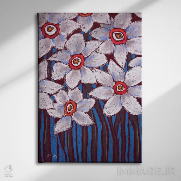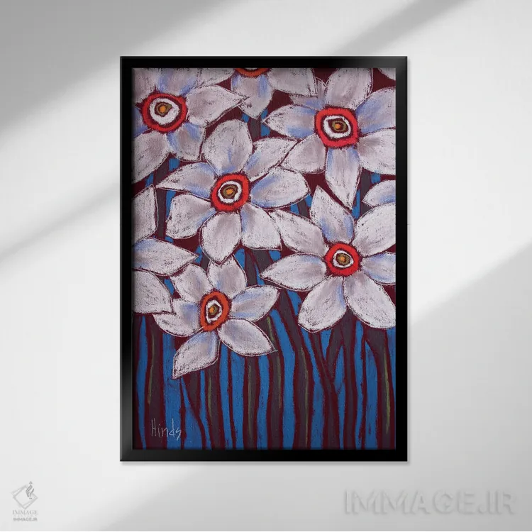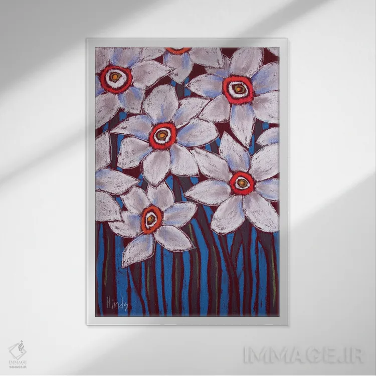 اگر دوست دارید دیوار روشنتر و آرامتر دیده شود، «گلهای سفید» اثرِ «دیویدای هینْدز» برای دیوارهای ساده، یک لطافتِ دقیق میسازد، برای خانههایی با نور طبیعی گزینهٔ مناسبیست. فضا را شلوغ نمیکند؛ فقط لطیفترش میکند.