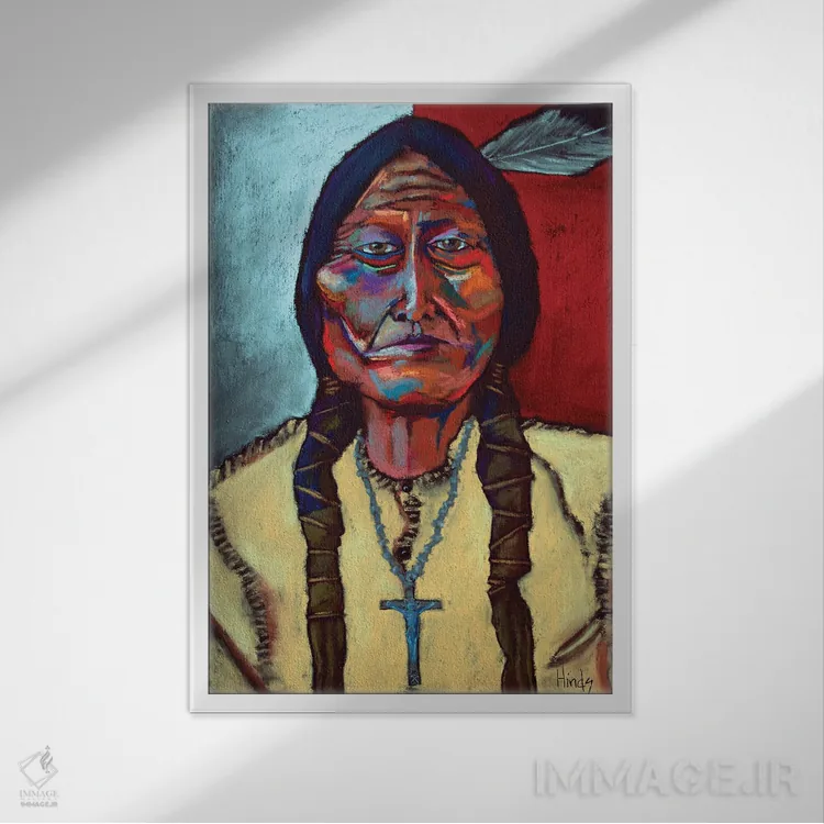 «بول نشسته (نام سرخپوست مشهور آمریکا)» اثرِ «دیویدای هینْدز» با ریتمِ بصریِ منظم و لطیف، میتواند بهخوبی کنار مبلمان ساده و رنگهای خنثی بنشیند.