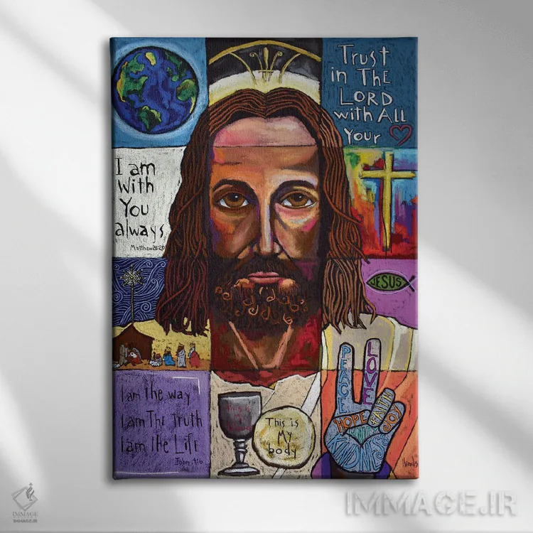 تابلو دکوراتیو کلاژ عیسی مسیح اثر دیویدای هیندز - نمای پرسپکتیو محصول