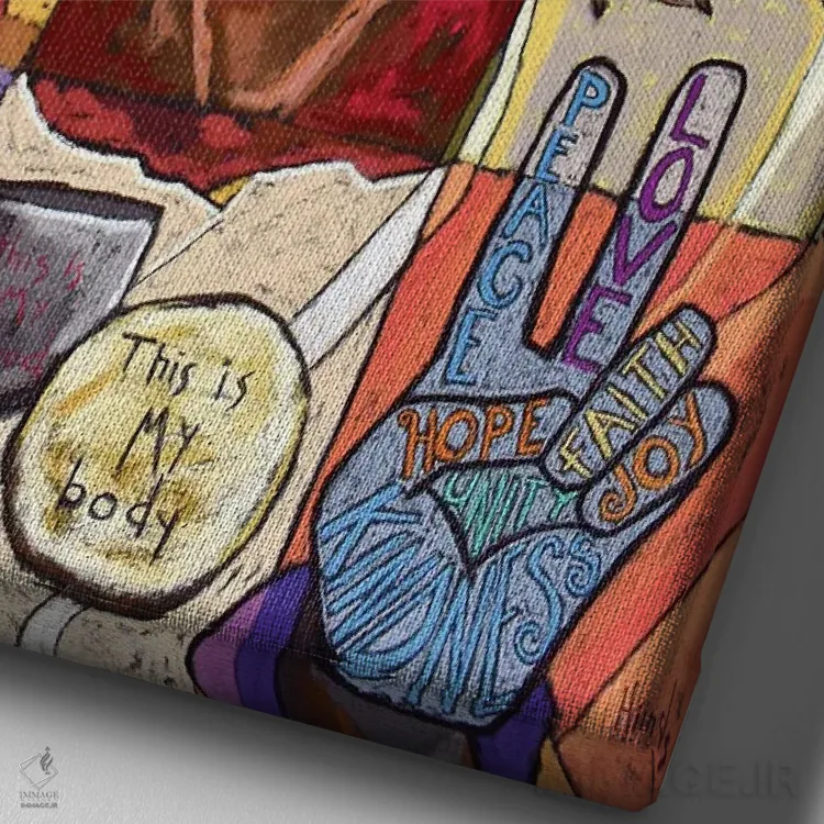 تابلو دکوراتیو کلاژ عیسی مسیح اثر دیویدای هیندز - نمای نزدیک بافت بوم