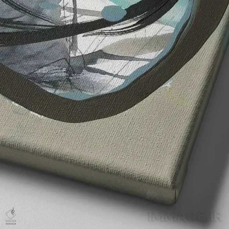 تابلو دکوراتیو اخرایی و سیاه بر روی آبی II اثر جنیفر گلدبرگر - نمای نزدیک بافت بوم