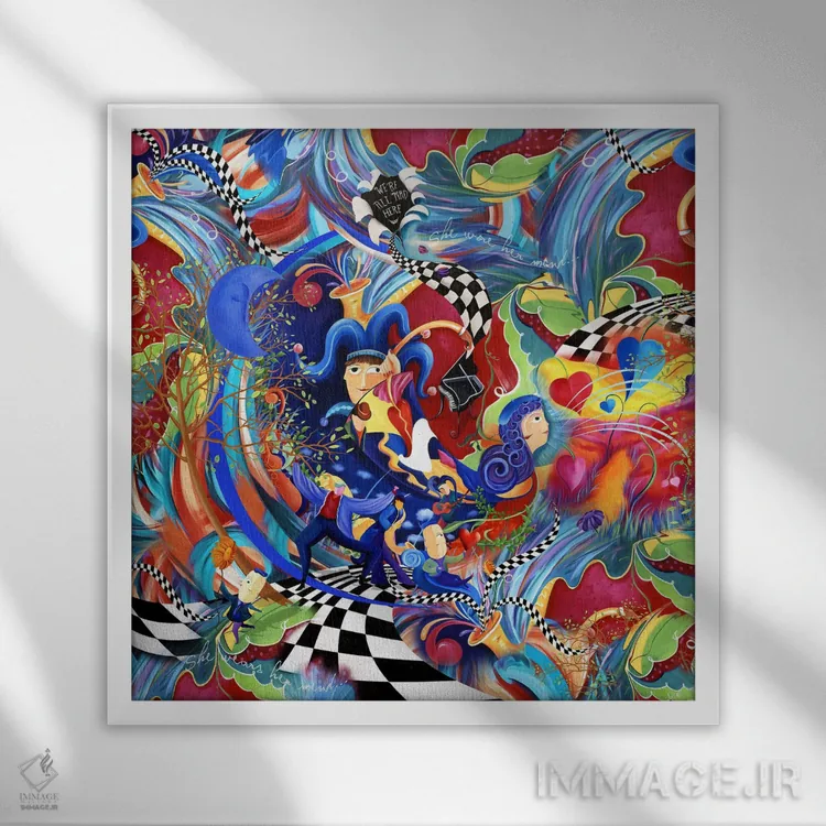 براساس پالت ترکیبی اثر، قاب تیک گرم (چوبی) پیشنهاد اول است و مشکی مات (فریم متوسط) مکمل. برای سفارشهای پروژهای با ابعاد و قابهای اختصاصی با ایماژ در تماس باشید.