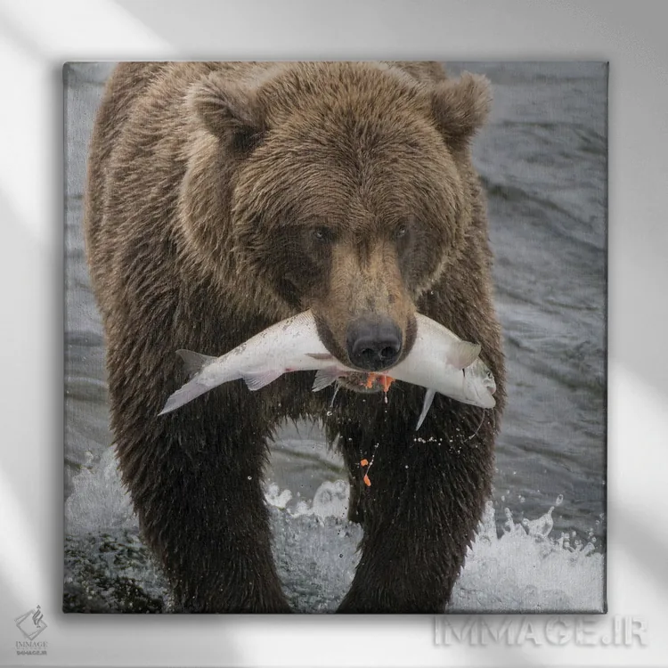 تابلو دکوراتیو Brooks Falls Grizzley Bear Holding A Salmon In Its Mouth,آلاسک… اثر جنت مویر - نمای پرسپکتیو محصول