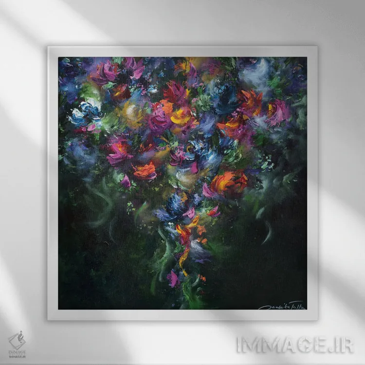 براساس پالت ترکیبی اثر، قاب تیک گرم (چوبی) پیشنهاد اول است و مشکی مات (فریم متوسط) مکمل. برای سفارشهای پروژهای با ابعاد و قابهای اختصاصی با ایماژ در تماس باشید.