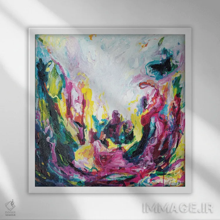 براساس پالت ترکیبی اثر، قاب تیک گرم (چوبی) پیشنهاد اول است و مشکی مات (فریم متوسط) مکمل. برای سفارشهای پروژهای با ابعاد و قابهای اختصاصی با ایماژ در تماس باشید.