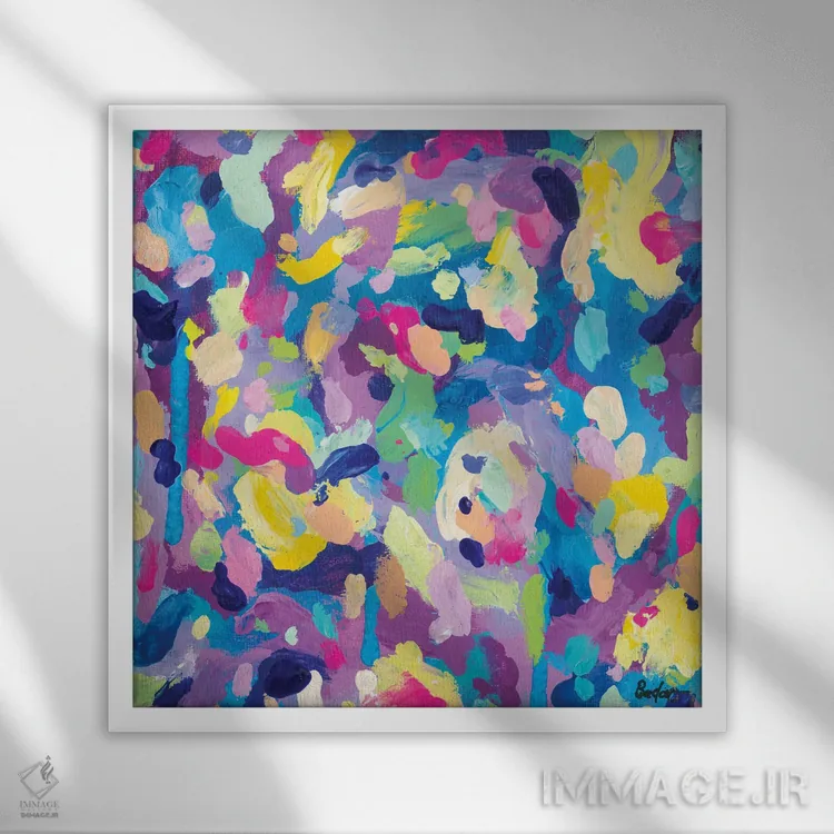 براساس پالت ترکیبی اثر، قاب تیک گرم (چوبی) پیشنهاد اول است و مشکی مات (فریم متوسط) مکمل. برای سفارشهای پروژهای با ابعاد و قابهای اختصاصی با ایماژ در تماس باشید.