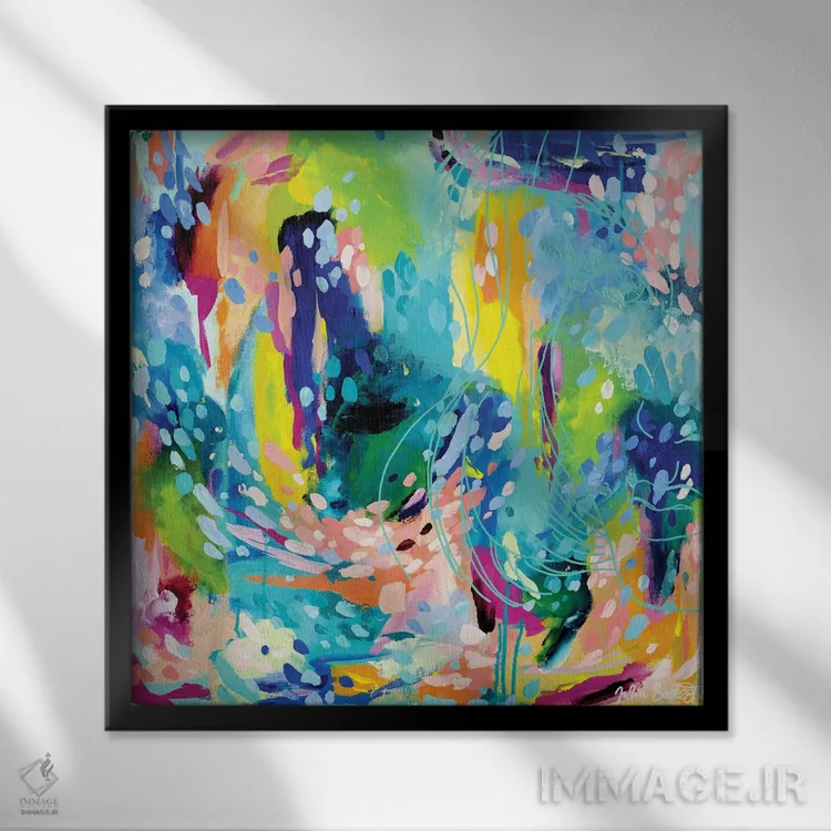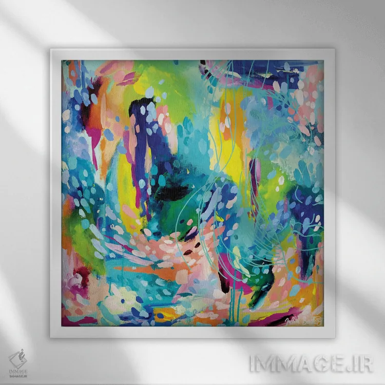 براساس پالت ترکیبی اثر، قاب تیک گرم (چوبی) پیشنهاد اول است و مشکی مات (فریم متوسط) مکمل. برای سفارشهای پروژهای با ابعاد و قابهای اختصاصی با ایماژ در تماس باشید.