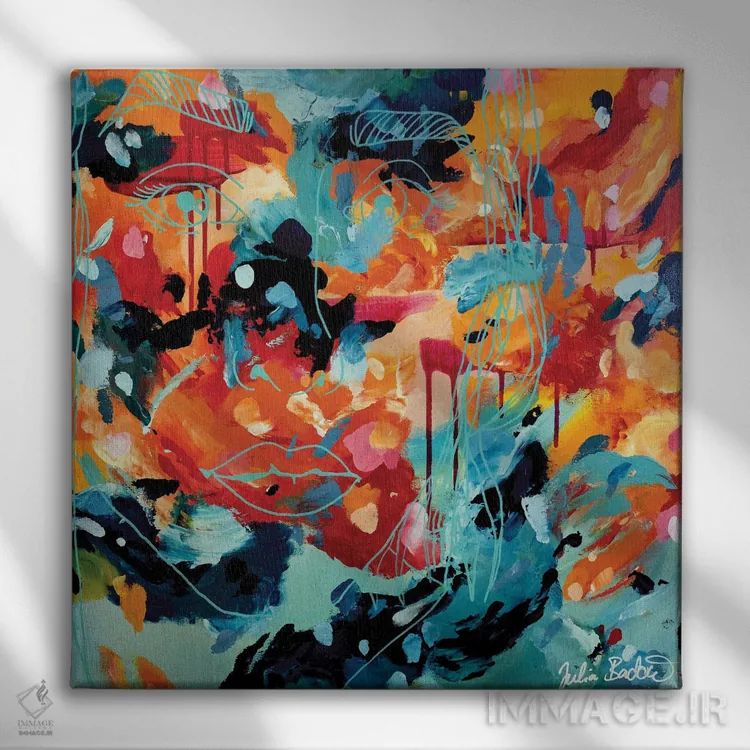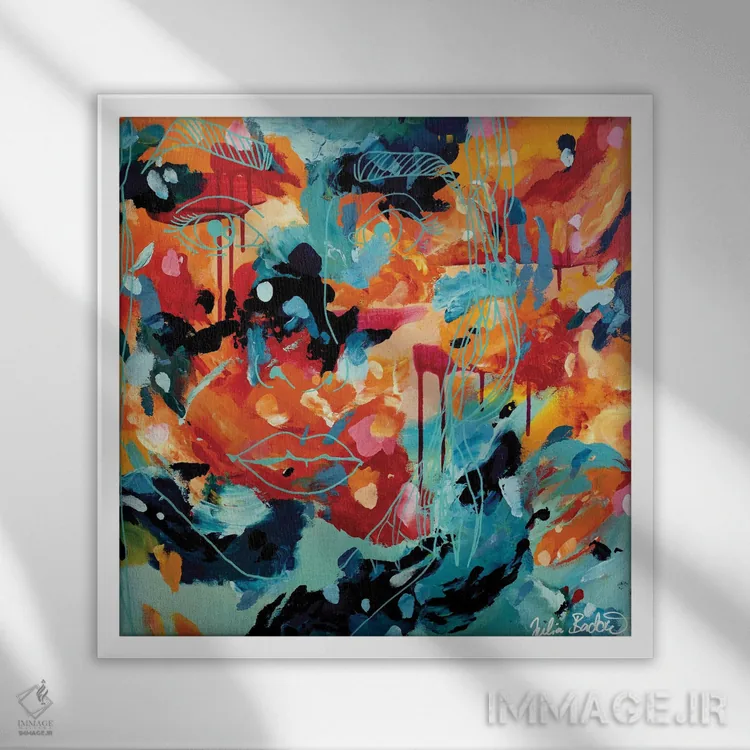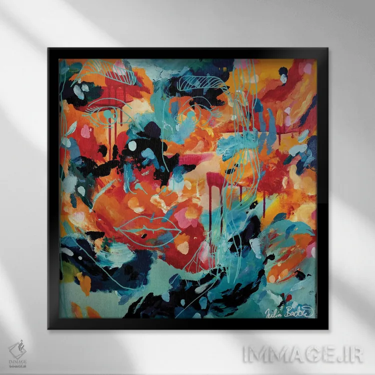 براساس پالت ترکیبی اثر، قاب تیک گرم (چوبی) پیشنهاد اول است و مشکی مات (فریم متوسط) مکمل. برای سفارشهای پروژهای با ابعاد و قابهای اختصاصی با ایماژ در تماس باشید.