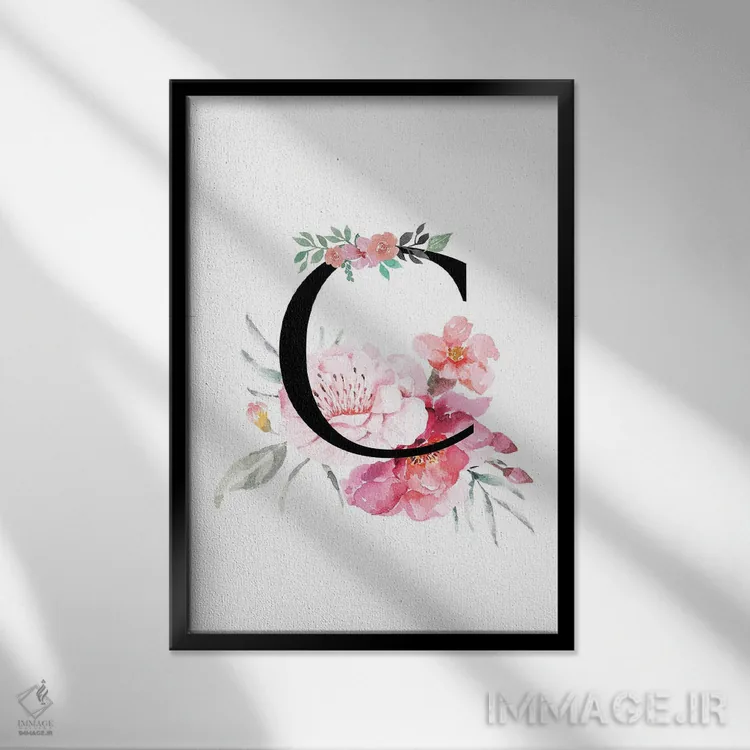 تابلو دکوراتیو حرف C با گل های آبرنگی اثر پیج ترنر