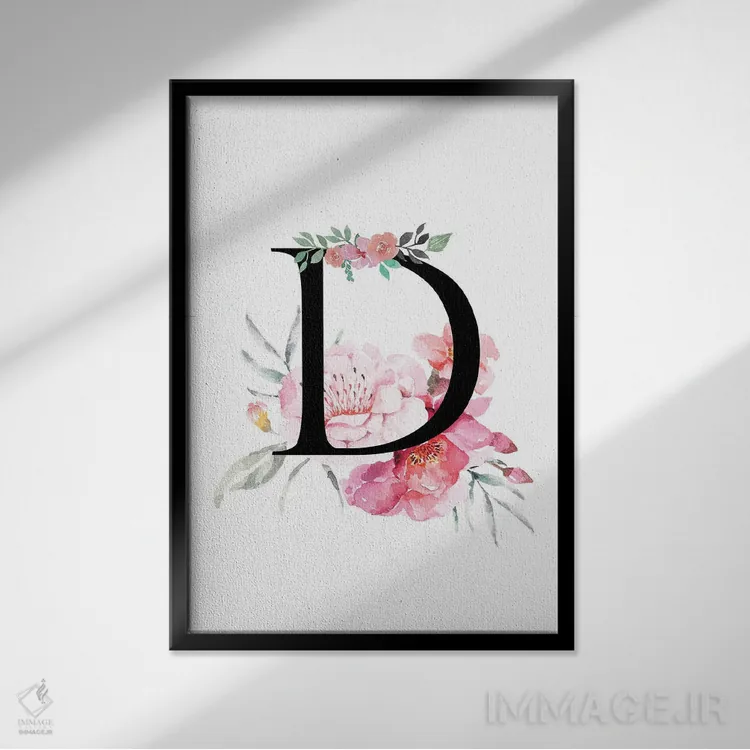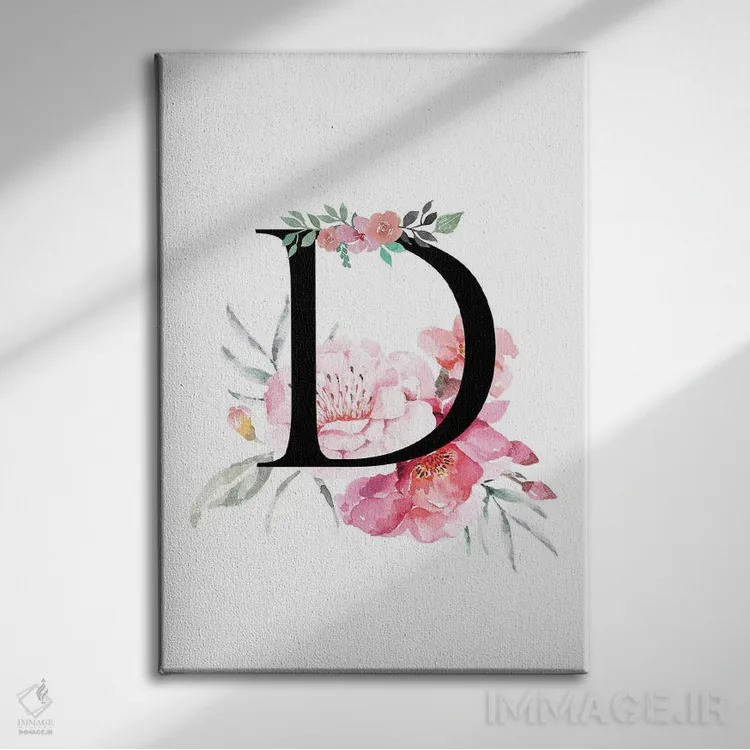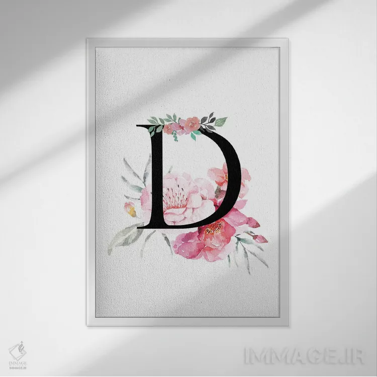 تابلو دکوراتیو حرف D با گل های آبرنگی اثر پیج ترنر
