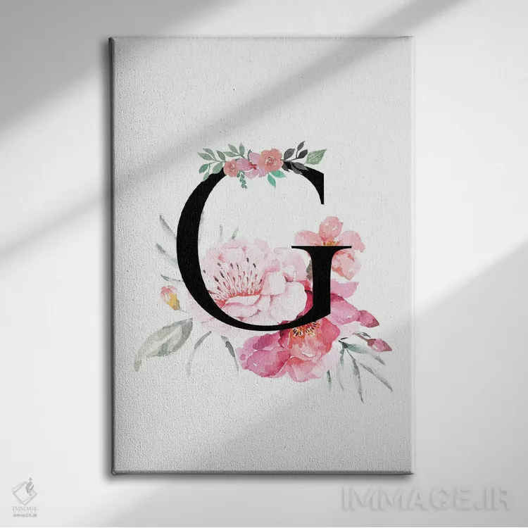 تابلو دکوراتیو حرف G با گل های آبرنگی اثر پیج ترنر