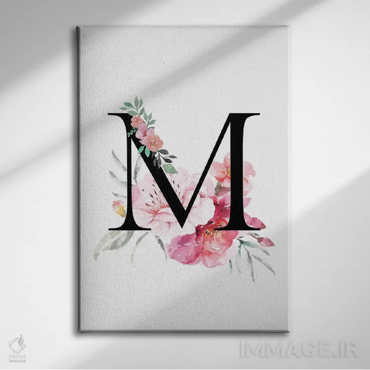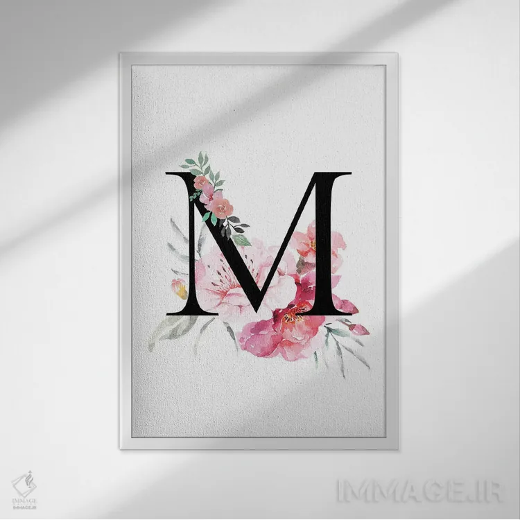 تابلو دکوراتیو حرف M با گل های آبرنگی اثر پیج ترنر